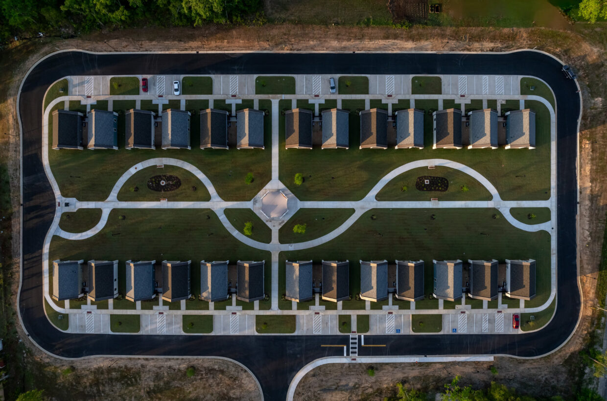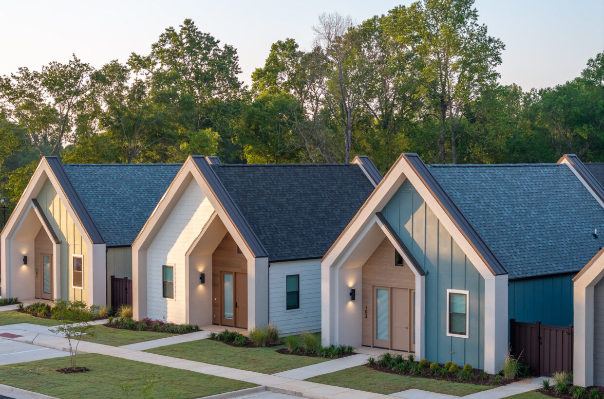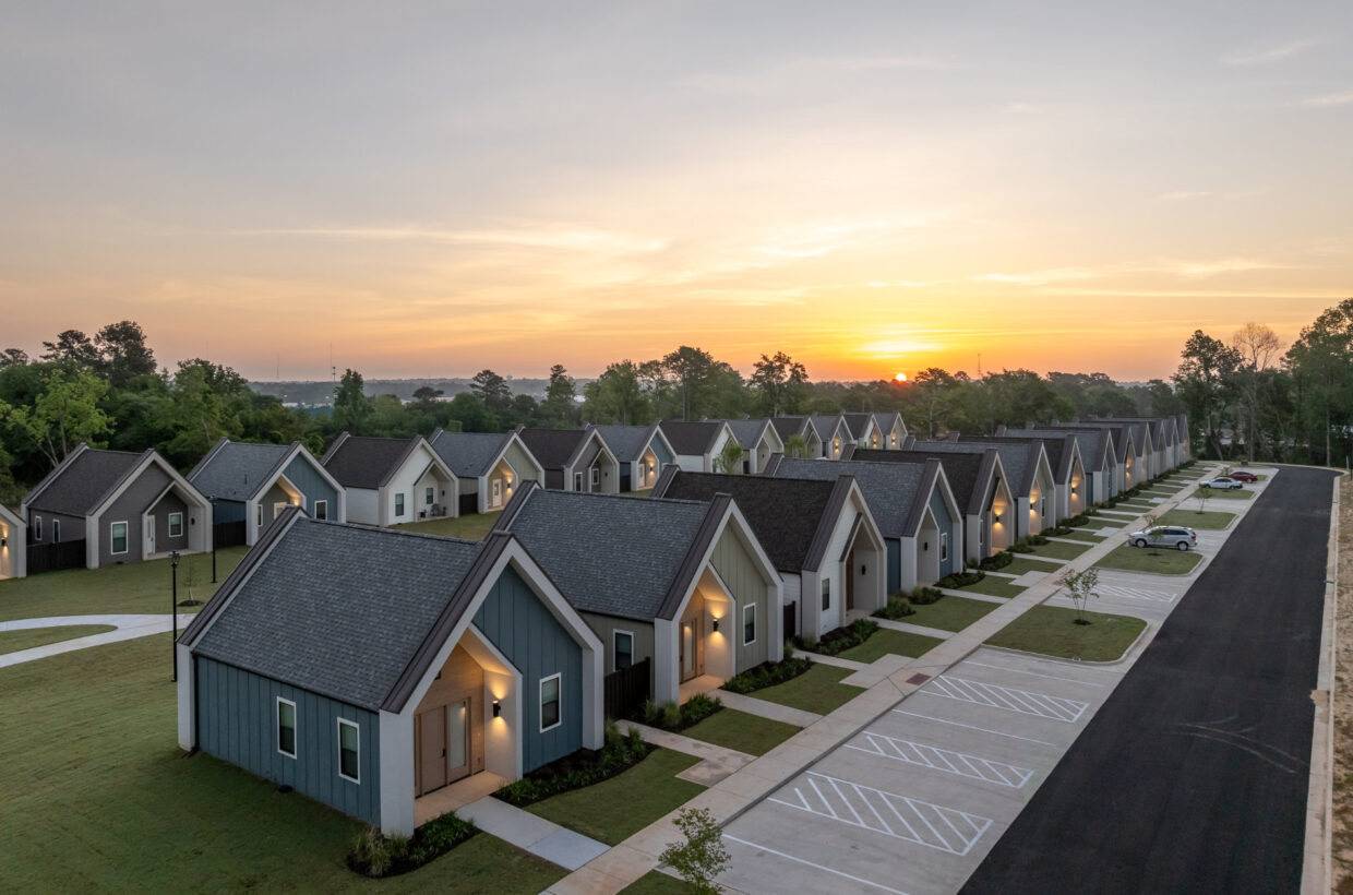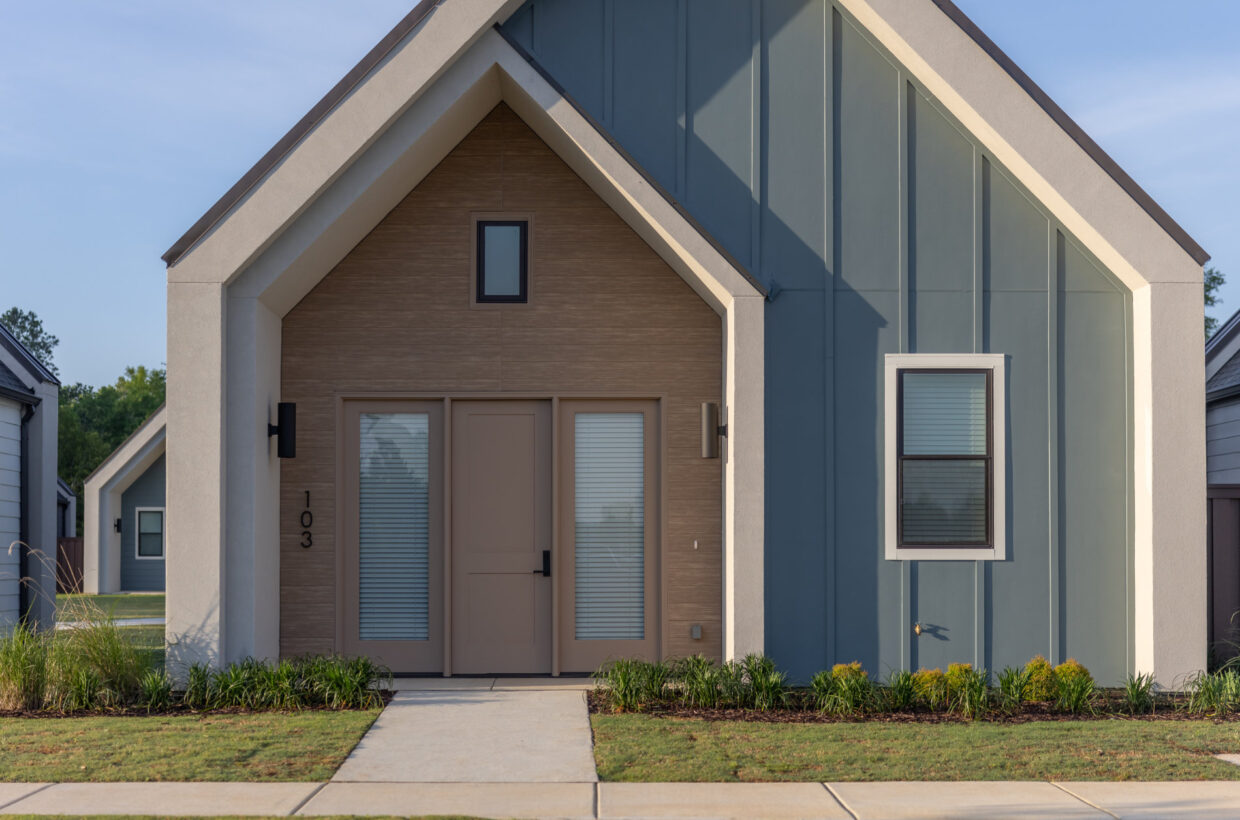 Serenity Courtyard of Macon features 26 single-family tiny homes designed with a universal design approach, ensuring that each space is usable, accessible, and inclusive for individuals of all ages and abilities. This community is specifically intended to support seniors aged 55 and older who are living with mental health or substance use disorders and have experienced homelessness.